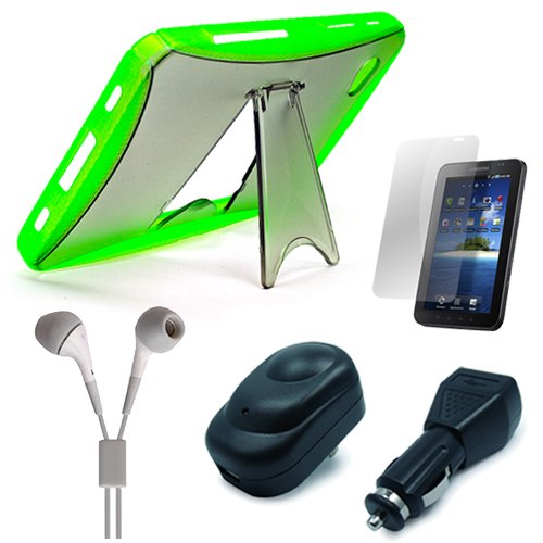 "Green Trim Durable Protective Hard Crystal Case Cover with Newly Designed Kickstand for Samsung Galaxy Tab 7 inch LCD Display Screen Wifi 3G Samsung Galaxy Tablet P1000 + Anti Glare Clear Screen Protector + USB Car Charger + USB Travel Wall Charger + Hifi Noise Reducing Headphones / Earbuds" Overview